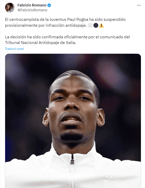 Esta situación que ha ha marcado la agenda del día recalca que Pogba fue llamado a la convocatoria en aquel compromiso, pero que sin sumar minutos vivió la victoria de la Juventus por marcador de 3 a 0 ante el Udinese desde el banco, posteriormente el jugador fue llamado a la tradicional prueba arrojando como resultado positivo en testosterona, sustancia prohibida por la Agencia Mundial Antidopaje debido a sus efectos potencialmente mejoradores del rendimiento.