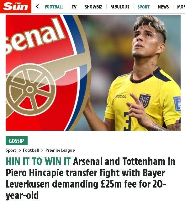 Si bien la opción del Arsenal es la más tentadora por su condición de líder del campeonato, lo cierto es que el ex Talleres se podría adaptar mejor al Tottenham. Los Spurs juegan con línea de 3, tal como viene jugando Piero en Leverkusen, y además no tienen a un zaguero zurdo en la plantilla (usan al lateral Davies en ese sector). Es decir, Hincapié llegaría al equipo dirigido por Antonio Conte para jugar ya.