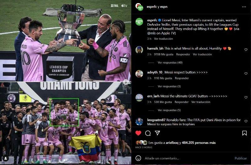 Sabemos bien que Messi llegó hace muy poco al club. Por lo que él significa dentro de la cancha, le dieron la cinta. DeAndre Yedlin le cedió la cinta. El argentino era conciente de eso y a la hora de recibir la copa, el ex PSG y Barcelona lo llama para que la lleven juntos hacia el escenario donde se encontraban sus compañeros. Previo a esto, ya le había dado el brazalete durante los festejos que los consagraban dueños del torneo.
