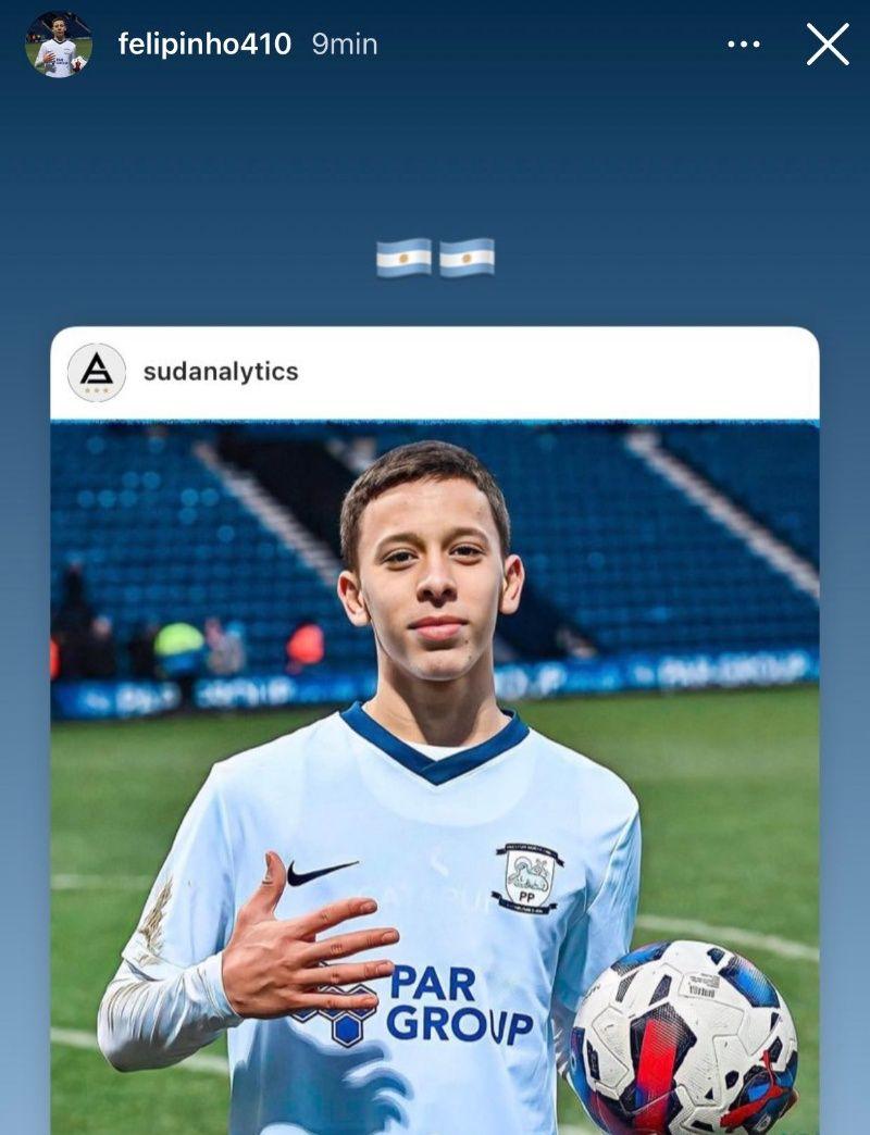 Ahora bien, en los últimos días saltó la ficha sobre un delantero brasileño con padres argentinos que se podría sumar a esta lista de representantes de la Albiceleste. Se trata de Felipe Rodríguez-Gentile, más conocido como Felipinho, un delantero de 16 años que es furor por sus números con la Sub 18 del Preston North End de la Segunda División de Inglaterra.