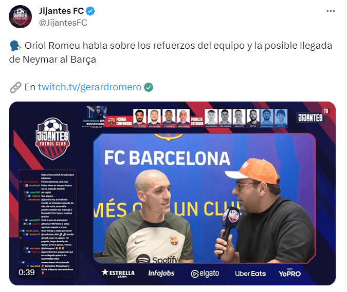 En entrevista con el periodista Gerard Romero, Oriol Romeu, quien es uno de los nuevos fichajes del Barça, ha expresado su deseo de tener a Neymar como compañero, lo ve con optimismo y lo sueña tras ser enfático en que su presencia en el equipo apoya y sumaria en todos los objetivos dispuestos para esta temporada.