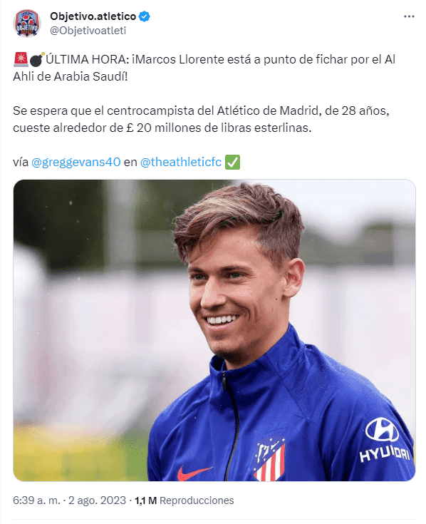De acuerdo a la información del periodista Gregg Evans, Al Hali viene la carga por Marcos Llorente y ya llevó una oferta de 20 millones de euros para quedarse con el centrocampista español nacido en la cantera de Real Madrid. Si bien no era titular indiscutido, Diego Simeone lo pensaba como una pieza importante de recambio.