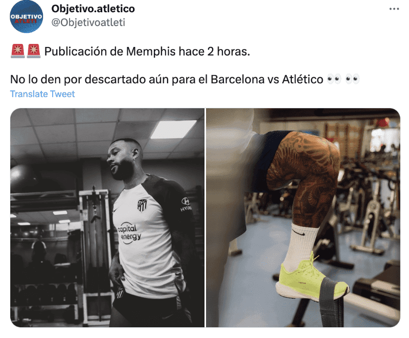 Memphis Depay subió fotos del entrenamiento que ha hecho con miras al partido ante el FC Barcelona. Atlético de Madrid le dio la chance de seguir su carrera y el jugador no quiere fallarles, es por ello que ha decidido acelerar la recuperación, esforzarse el doble en el gimnasio y fortalecerse para el duelo.