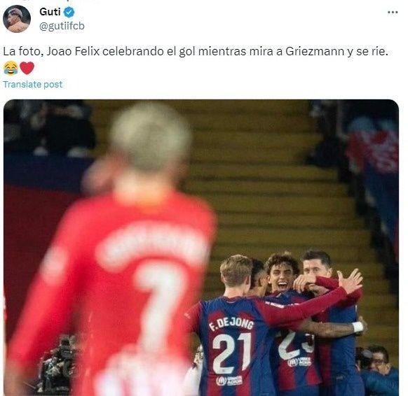 Joao Félix celebró por todo lo alto el gol que le marcó al Atlético de Madrid y hay una foto donde se ve al portugués sacándole en cara a Antoine Griezmann, durante la celebración. El portugués se abrazo con sus compañeros del FC Barcelona pero estuvo pendiente de dónde estaba el francés y empezó a gritarle el gol en la cara.