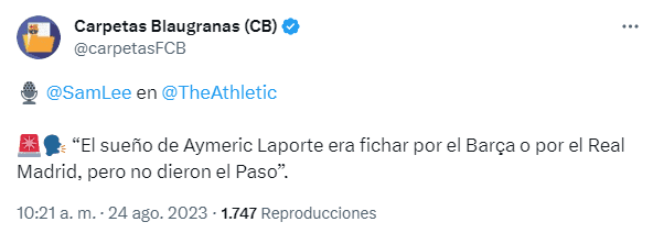 De acuerdo a información mencionada por el periodista especializado en el Manchester City para The Athletic, Sam Lee, el deseo de Laporte era jugar en LaLiga y fichar fuese por él Barça o por el Real Madrid en esta temporada; el jugador aguardo por una oferta más clara e incluso el mismo entrenador Pep Guardiola trató de tener incidencia para la llegada del jugador al Camp Nou.