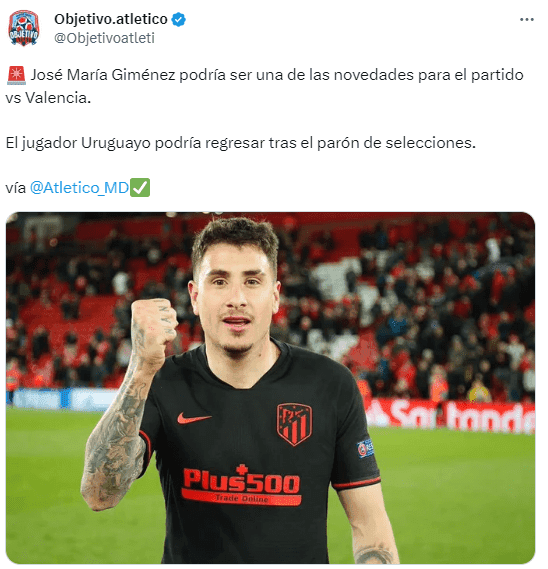El regreso del central uruguayo Josema Giménez ha sido la novedad del día en los entrenamientos de este martes. Tras una fisura en su tibia en el mes de julio el referente del Atleti se perdió la pretemporada y este gran inicio de campaña con su club; por ende sus trabajos en campo el día de hoy alegraron a todo el staff técnico quien aguarda poderlo tener para el regreso por LaLliga el 16 de septiembre ante el Valencia.