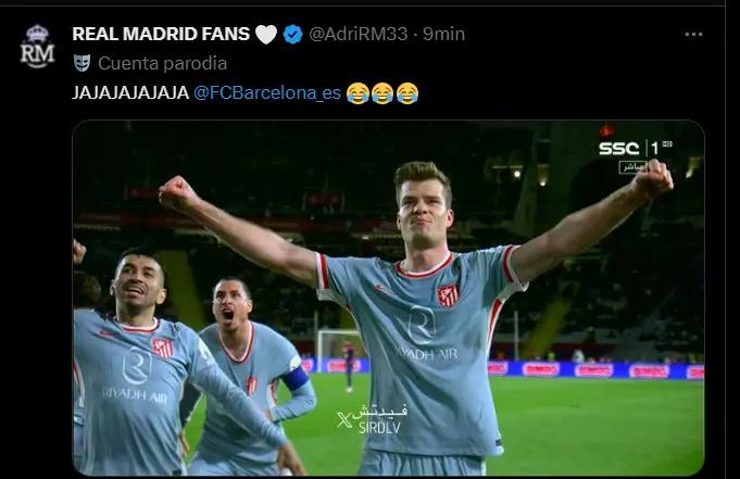 El partido de ida de las semifinales de la Copa del Rey entre el FC Barcelona y el Atlético de Madrid dejó un sabor agridulce para los culés, quienes vieron cómo su equipo se dejó empatar 4-4 en el último minuto. Este resultado no pasó desapercibido para los aficionados del Real Madrid, quienes no dudaron en expresar su alegría y burlarse de su eterno rival.