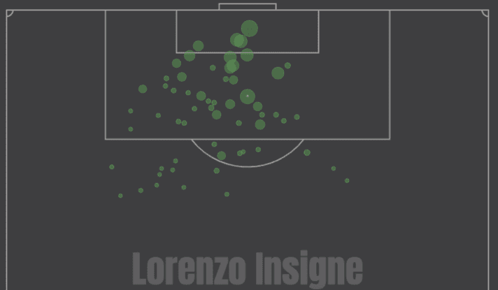 Si estudiamos los movimientos y la presencia en cancha de Lorenzo Insigne, se observa que brinda altas probabilidades de anotar al Napoli en el área grande, desde afuera del área vía tiros libres. En el caso que se defina por penales, la probabilidad de que Insigne patee y acierte es alta.