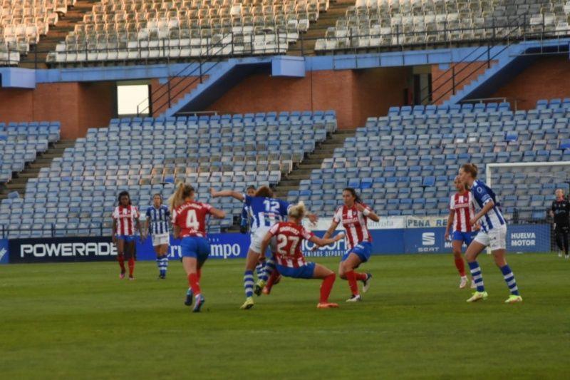 Más allá del golpe recibido, y en un momento anímico clave como lo es el final de la primera etapa, tras el descanso las colchoneras siguieron dominando el encuentro y siendo el único conjunto que proponía algo de juego. Pero cuando el equipo de Fernández hacía méritos para llegar al empate, el Sporting de Huelva preparaba otro mazazo.