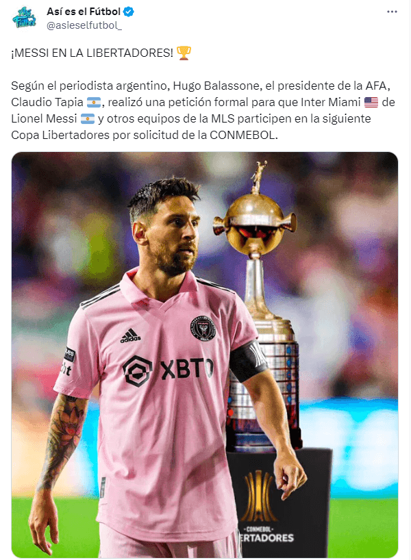 Desde la vía del título de la Concachampions se espera clasificar a la Libertadores para el 2025, aquí tenemos la primera opción. La otra va desde el carácter más político, ya que Claudio Tapia, presidente de la AFA, le hizo extensiva la invitación al Inter de Miami para participar de la competición en 2024, en carácter de invitado junto a otros equipos a nombre de la Conmebol.