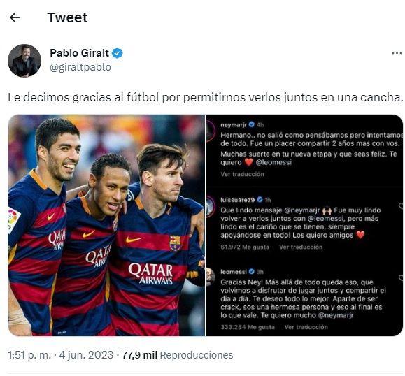 En PSG se dio finalmente lo que se esperaba. Lionel Messi se fue tras la derrota con Clermont por la League 1 y ahora deberá definir su futuro. Mientras el delantero argentino toma esa decisión, sus ahora ex compañeros empiezan a darle muestras de afecto. Tal fue el caso de su amigo Neymar que le dejó una calidad despedida en su cuenta de Instagram.