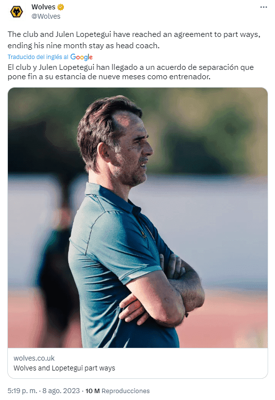 "Necesitamos fichar para ser competitivos", fueron las palabras textuales del propio Julen Lopetegui, algo que los dirigentes de Wolverhampton tomaron de muy mala manera. Si bien le agradecieron públicamente por el tiempo que unió a ambas partes, se filtró que la decisión de su salida se venía analizando hacía tiempo.