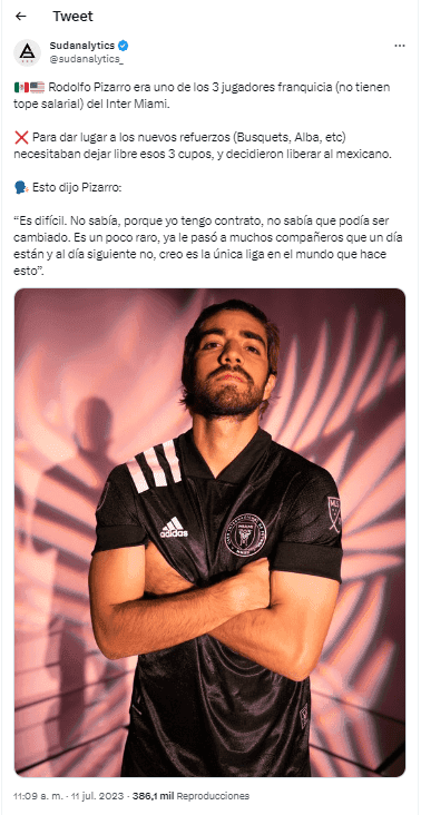 Tal como lo contó el propio jugador, Rodolfo Pizarro fue despedido de Inter de Miami porque el club tuvo que liberar los tres cupos de jugadores franquicias para que puedan llegar las estrellas a las que apuntaron en el mercado de pases. Entre ellos estaba Lionel Messi y también Sergio Busquets, resta definir el tercer refuerzo.