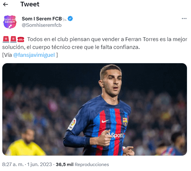 De acuerdo a la información de Javi Miguel Club de diario AS, Xavi Hernández tiene como objetivo lograr que Ferrán Torres recupere el nivel que tuvo en los mejores momentos de su carrera. Para el entrenador Culé, al delantero ex Manchester City lo que le falta es confianza en si mismo para ser el de antes.