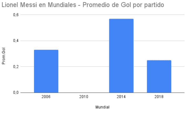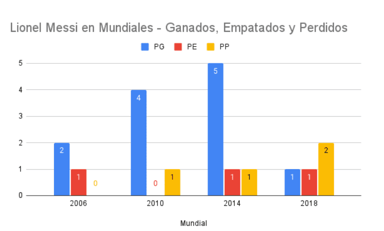 En este gráfico se puede observar como Argentina fue avanzando en su desempeño desde 2006 en adelante con la presencia del astro pero el Mundial de Rusia 2018 no cumplió con las expectativas y se quedó afuera en octavos con la poderosa y última campeona mundial Francia de la mano de su hoy compañero de equipo, Mbappé.