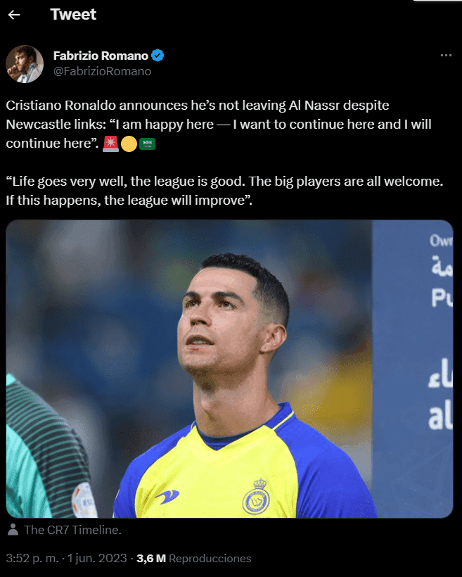 Cristiano Ronaldo dijo que está muy feliz en Arabia Saudita y que piensa quedarse a cumplir su contrato allí. Además, invito a todos los grandes jugadores a que se sumen, siendo ellos bienvenidos. Con esas palabras, incluyó al propio Lionel Messi y a todas las mega estrellas que figuran como rumores de fichajes.