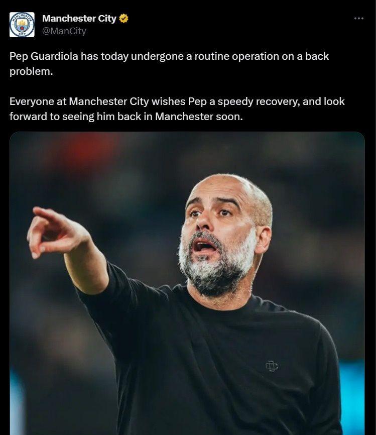 En un comunicado vía Twitter, la cuenta oficial de los ‘Citizens’ explicó lo que ocurrió: “El entrenador del Manchester City ha estado sufriendo fuertes dolores de espalda durante algún tiempo, y voló a Barcelona para someterse a una operación de urgencia realizada por la Dra. Mireia Illueca. La operación fue un éxito, y Pep se recuperará y rehabilitará en Barcelona”.