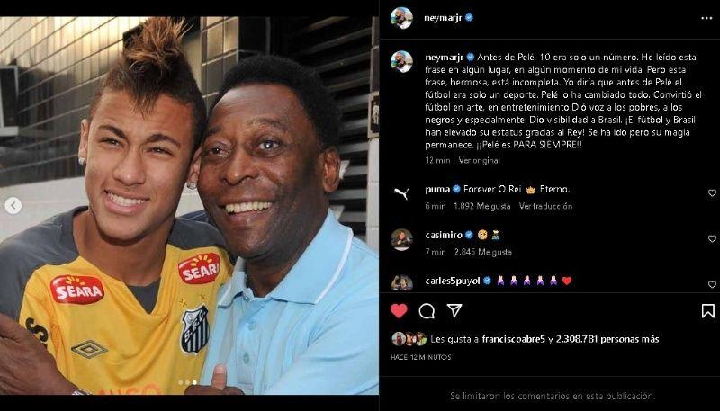 Apenas se confirmó su deceso, algunos de los mejores jugadores del mundo se pronunciaron en redes sociales, desde Cristiano Ronaldo a Kylian Mbappé. Sin embargo, uno que resaltó por encima del resto fue el de Neymar. Ambos son ídolos del Santos y las palabras del crack brasileño fueron de las más emotivas que se leyeron.