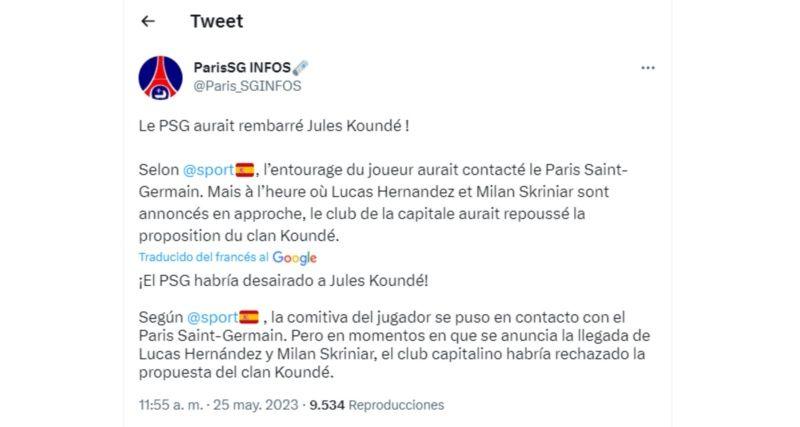 De todos modos, PSG habría declinado la propuesta del francés porque sigue los pasos de los defensores Lucas Hernández y de Milian Skriniar. Además de este panorama, Jules Kounde tiene contrato vigente en FC Barcelona y su salida cuesta 100 millones de euros, por lo que cambiar de destino parece complicado.