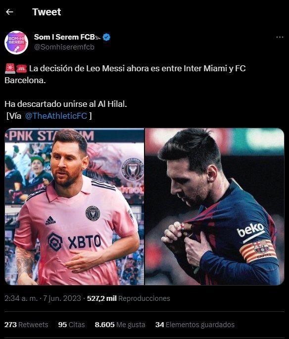 Como mencionamos, existía una gran posibilidad de que Inter de Miami fiche a Lionel Messi para luego prestarlo a FC Barcelona por entre 6 y 18 meses. Sin, embargo tal y como menciona el diario The Athletic, esto parecería ya estar descartado por parte del club estadounidense, que busca conservarlo para ellos. Veremos si el Barcelona acaba haciendo algún intento de acercamiento respecto a este asunto.