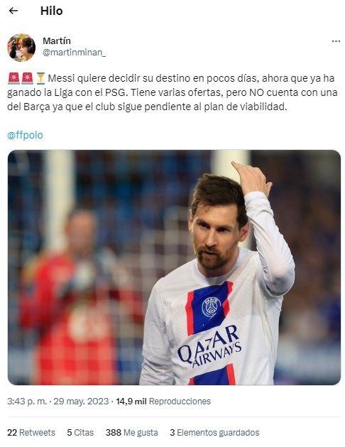 Según la información del periodista Fernando Polo, Lionel Messi quiere definir su futuro en pocos días ya logrando el objetivo de ser campeón de la League 1 en Francia y tiene varias ofertas para analizar, el tema en cuestión es que no hay ninguna formal de FC Barcelona y hay un motivo concreto.