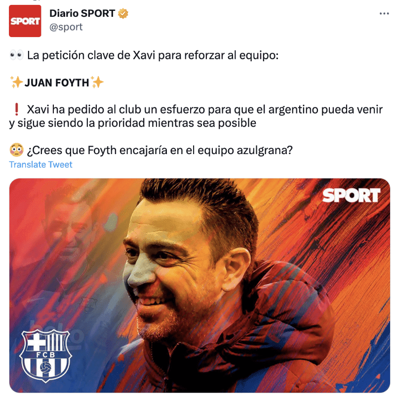 FC Barcelona no pierde objetivos por contratar a nuevos elementos, aunque la prioridad que tienen es Lionel Messi. Sin embargo ha anunciado Sport que Xavi Hernández ha pedido que contraten a Juan Marcos Foyth, actualmente en el Villarreal y que fue campeón con la Selección de Argentina, en conjunto con el 10.