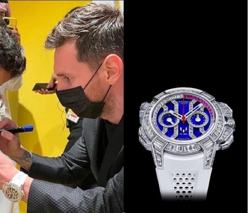 Messi llevaba un reloj pulsera de la exclusiva marca Jacob & Co de oro blanco de 18 kilates, el cual es tan limitado que sólo se hizo uno, el que usó el crack argentino del PSG. La marca Jacob & Co es un minorista de joyería y relojes pulseras fundada por Jacob Arabo, empresario uzbeko de nacionalidad americana, que tiene su tienda principal justamente en Manhattan, en Nueva York. La pieza se hizo a pedido del futbolista de la Selección de Fútbol de Argentina, el cual lo usa solo en algunos eventos, ya que en la mayorpía del resto suele verse con un reloj dorado "más terrenal".