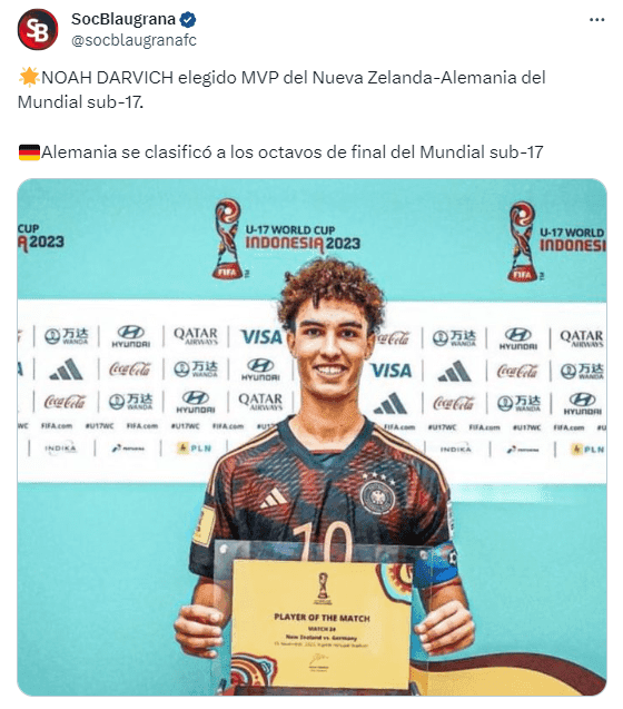 Para quienes no han estado al tanto, por estos días se lleva a cabo el Mundial Sub 17 de la FIFA en Indonesia, ya en las últimas horas un jugador ha sido de los más determinantes de la serie eliminatoria de los octavos de final, y sería uno de los objetivos del cuadro blaugrana para proyectarlo al primer equipo, tan solo 17 años, y una personalidad impresionante desde su puesto como 10, tiene a todo el cuerpo técnico deslumbrado y tendría una chance clara en las próximas semanas, cuando más le necesita el club.