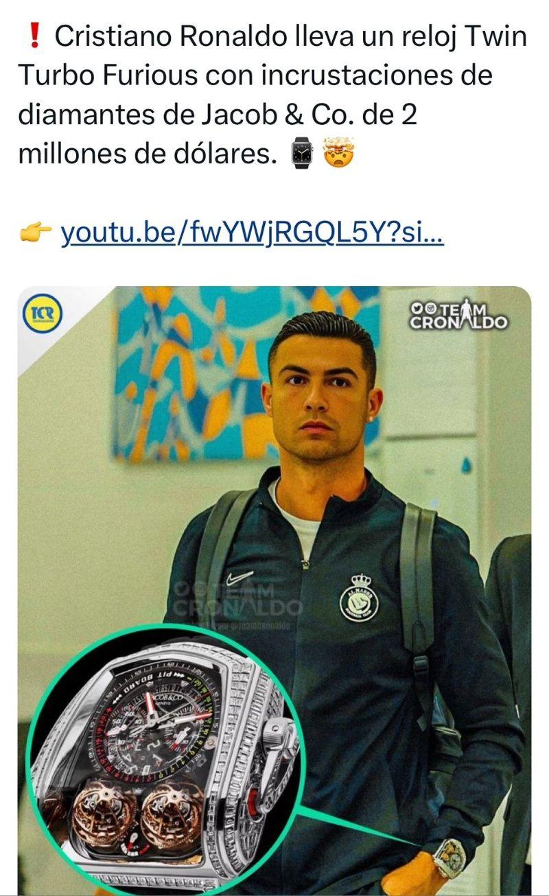 Cristiano Ronaldo sorprendió en la última práctica que tuvo con el Al-Nassr ya que apareció con un reloj que tiene un valor de 2 millones de dólares, de acuerdo a información del portal Team Ronaldo, que sigue al Bicho en todos sus pormenores. El jugador no escatimó a la hora de adquirir este lujoso reloj por festividades de navidad.