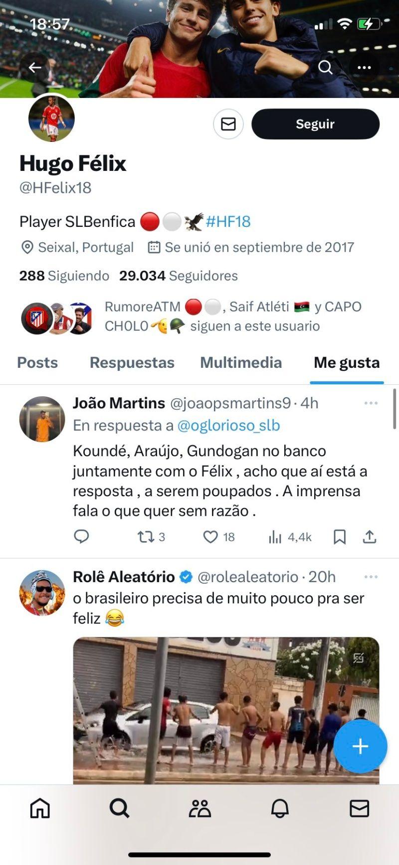 Esta fue una respuesta de Hugo Félix luego que un fan escribiera: “Si João Félix no piensa en cambiar de actitud, no será culpa de Mendes para siempre. Ahora no hay excusas del cargo ni de Simeone”. Ahora el portugués deberá redoblar esfuerzos si quiere seguir en el FC Barcelona porque no es una prioridad renovarle el contrato.