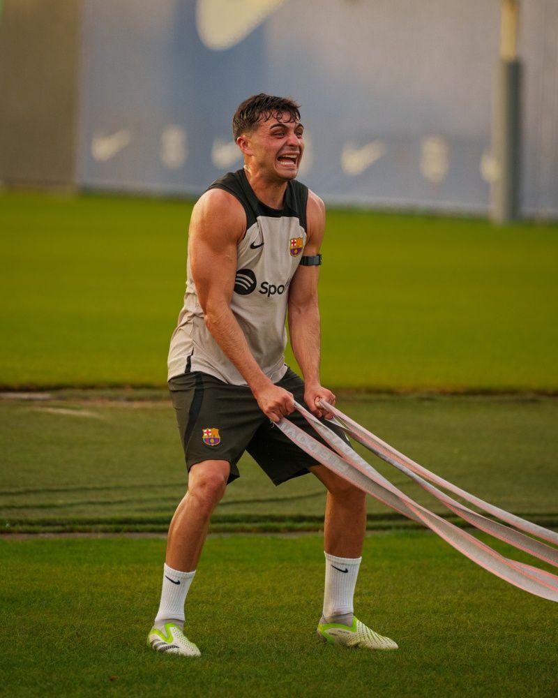 La imagen publicada por el FC Barcelona en sus redes sociales, que ya lleva 51 mil ‘likes’ y con un alcance de 5 millones de usuarios, deja en claro que hubo un cambio físico. En la imagen se ve a Pedri realizando un ejercicio y el club titula la foto con un “vaya brazo” en referencia a los musculados bíceps que se le ven al centrocampista.