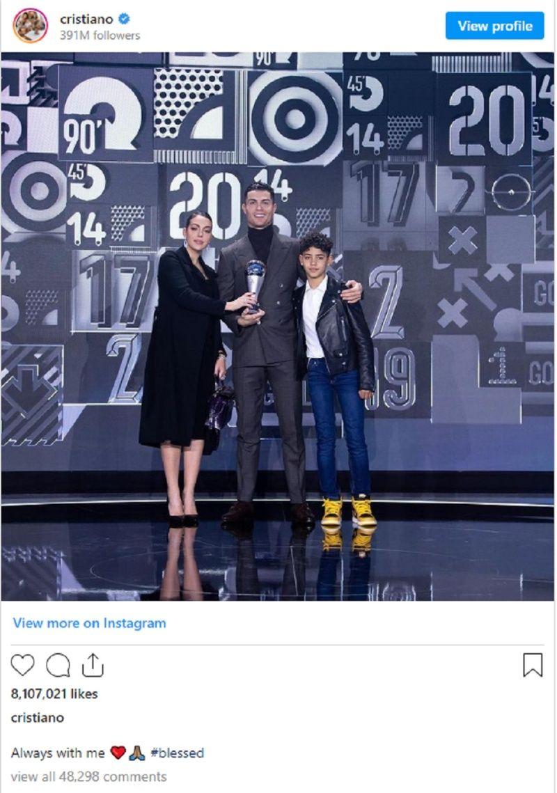 En la gala de The Best se le entregó un galardón a Cristiano Ronaldo, en reconocimiento por haberse convertido en el máximo goleador histórico de selecciones con Portugal. "Es un sueño, quiero dar gracias a mis compañeros de equipo, sobre todo en la Selección. Jamás me imaginé romper este récord de goles, era de 109 goles y por ahora lo superé por seis. Estoy orgulloso este premio de la FIFA, una organización que respeto. Quiero agradecerle a mi familia a mi esposa a mis hijos", declaró el luso en la transmisión oficial de la prestigiosa premiación.