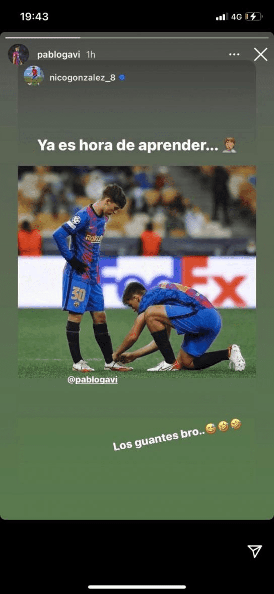 El técnico del fútbol base del Real Betis, Fernando Cáceres, que conoce a Gavi desde las inferiores confesó que Gavi "tiene tanta prisa por jugar que no pierde el tiempo atándose los cordones". Quienes conocen de cerca al joven jugador del Barcelona dicen que su entusiasmo por salir a la cancha antes de los partidos hacen que no se las ate o que haga el nudo tan débil que se deshaga en los primeros minutos.