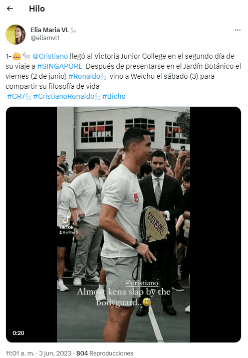 Luego de dejar los botines y tomar su valija, Cristiano Ronaldo llegó al Victoria Junior College en el segundo día de su viaje en Singapure luego de presentarse en el Jardín Botánico el viernes 2 de junio, el jugador de 38 años se trasladó hasta Weichu. El marco y motivo de sus visitas tiene que ver con compartir su filosofía de vida para las personas de esas ciudades.