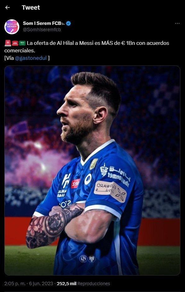 Nadie se quiere bajar de la puja por Lionel Messi, y si bien el argentino tiene claro que su prioridad es el FC Barcelona por encima de cualquier suma de dinero, Al-Hilal no tiene pensado rendirse. Por eso, el club Árabe llevó la oferta a niveles insospechados, ofreciéndole una suma de dinero que lo convertiría en el deportista mejor pago del mundo.