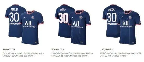La tienda oficial del Paris Saint Germain publicó en su web la casaca con el dorsal de Messi. La camiseta original del club a 186 dólares en su versión de juego y a 127 dólares en su versión "stadium". En ambos casos con el dorsal y el nombre del rosarino. En tanto, la versión de juego para niños tiene un precio de 162 dólares y la misma pero en versión "stadium" cuesta 104 dólares.