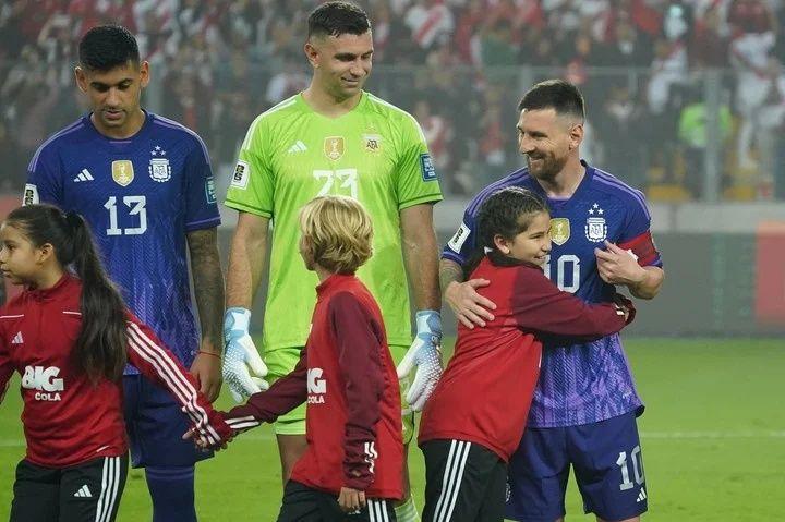 Muy lejos de ese tipo de actos, Lionel Messi hallado en el encuentro de la Selección Argentina contra Perú tuvo tres gestos enternecedores. El primero fue en la fila inicial antes del partido con el que demostró su cariño con dos niñas que formaron fila por delante de los jugadores argentinos. Ya en pleno segundo tiempo un niño con la camiseta Argentina ingresó como invasor al estadio y fue corriendo para darle un abrazo a La Pulga, algo que el delantero accedió sin ningún tipo de problema ante la rigurosa mirada de los hombres de seguridad.