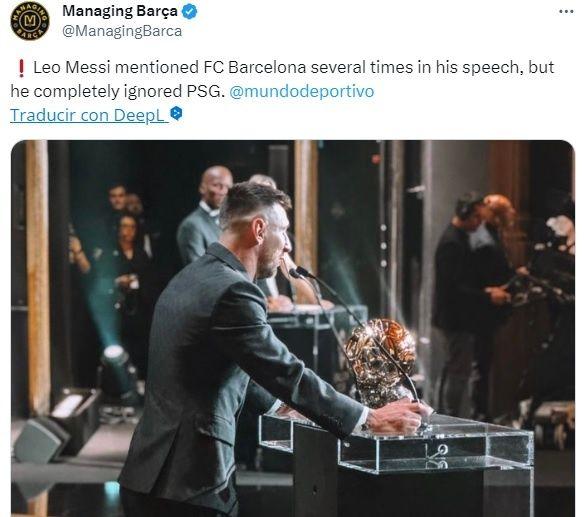 Lionel Messi ganó su octavo Balón de Oro y dio un discurso donde nunca se enfocó en Kylian Mbappé ni tampoco en el PSG. El astro argentino la pasó muy mal en París, donde los hinchas no se cansaron de insultarlo y pidieron su salida del equipo. Esto no olvidó el 10, que ignoró de manera completa al equipo en su discurso.