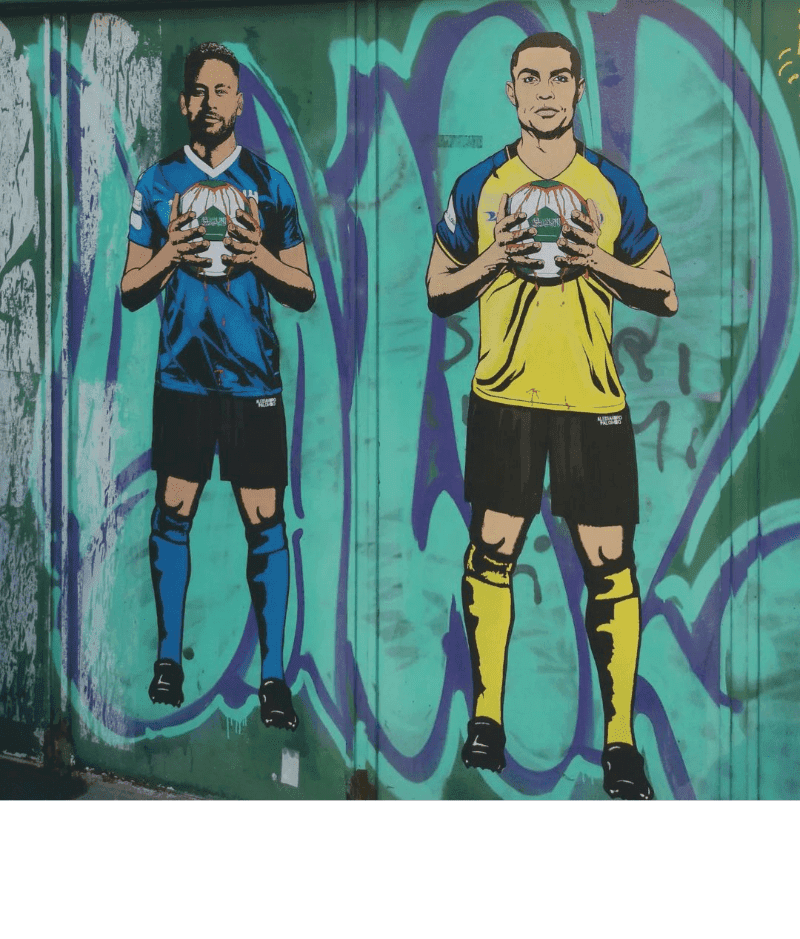 El título del mural y su explicación, "Bienvenido a Arabia Saudita. Contratar a precios estelares a estrellas del fútbol como Ronaldo, Benzema, Neymar o nombrar a Mancini como entrenador de la selección saudí significa comprar su reputación y la consideración de su público para desviar la atención del problema y reposicionar su imagen en el mundo. Todo ello traiciona los valores que representa el deporte, medio educativo y social para la protección y promoción de derechos.", refleja la posición del artista respecto a figuras destacadas que han optado por jugar en la liga saudí. Hasta el momento, Neymar no ha emitido declaraciones al respecto, probablemente para evitar controversias adicionales. A pesar de su incorporación al Al Hilal y sus primeros partidos en la liga saudí, no ha logrado llevar a su equipo a la victoria en sus primeras apariciones.