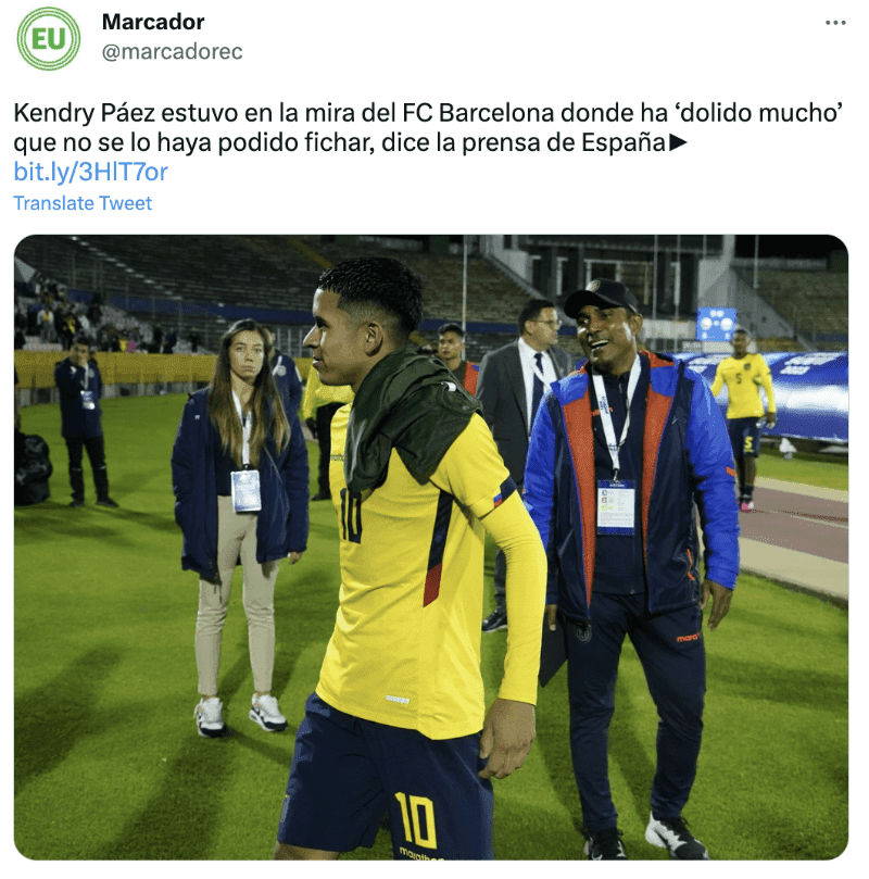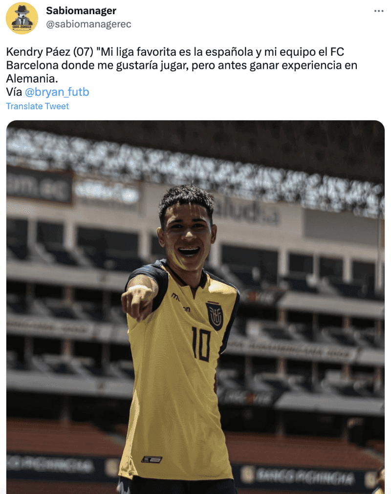 Páez en entrevista con un medio ecuatoriano en noviembre del 2022. Aunque el jugador de nacionalidad ecuatoriana tenía la intención de llegar al Barça, Chelsea se los ganó.