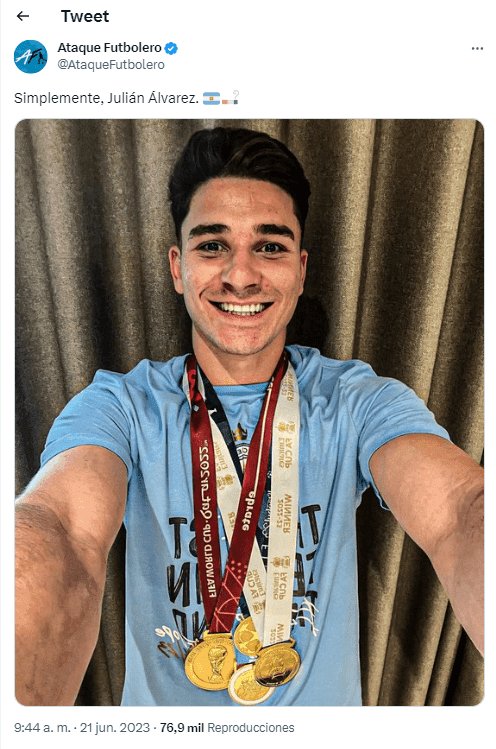 Julián Álvarez cerró un año dorado logrando premier League, FA Cup y Champions League con los colores de Manchester City y además obtuvo la Copa del Mundo con la selección de Argentina. Sin embargo, ante la falta de minutos en el conjunto inglés, no es carta poder cambiar de rumbo la próxima temporada.