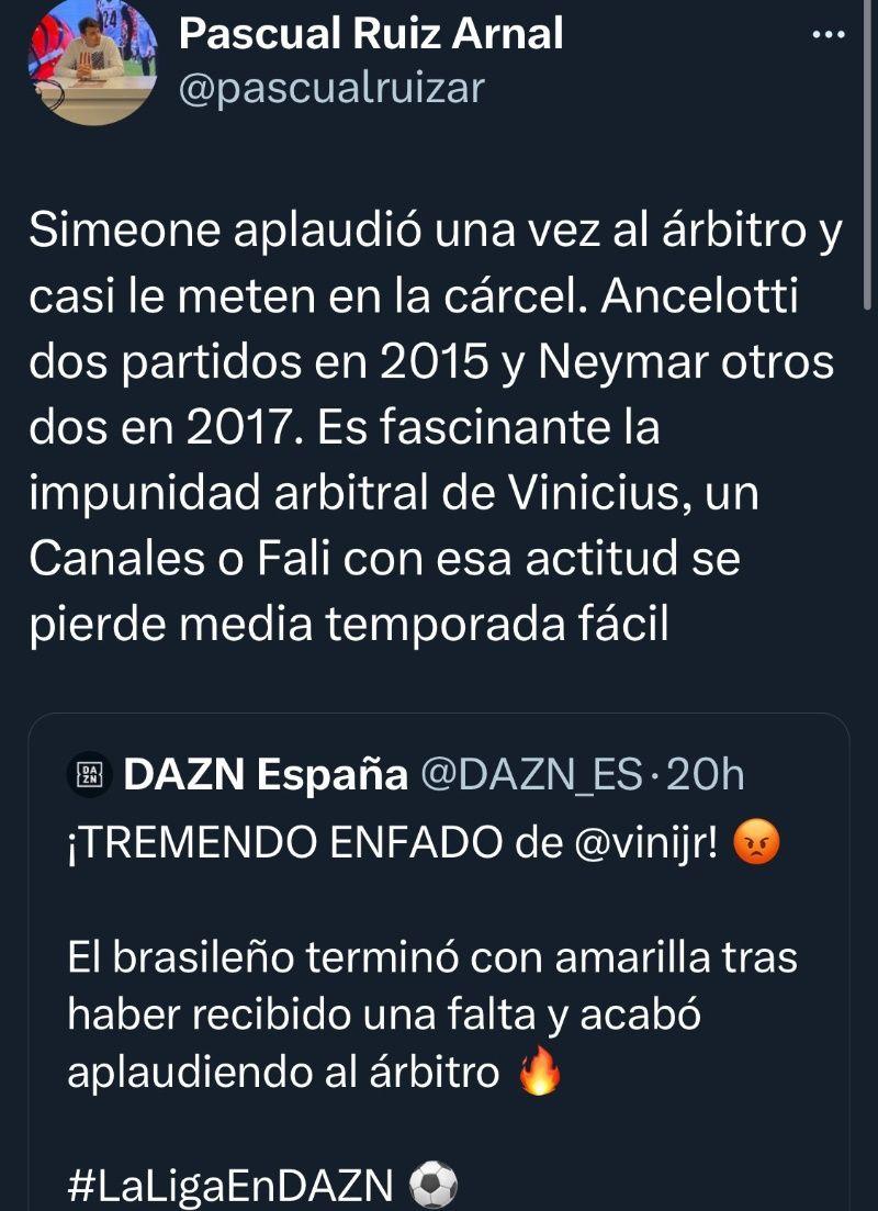 Real Madrid debe resolver el comportamiento de Vinicus que ya es mirado y reprobado por rivales, árbitros e integrantes del tribunal de sanciones. No es la primera vez que el atacante tiene este comportamiento, algo que ha hecho en varias oportunidades sin jamás ser expulsado. Mientras que por lo mismo, a Diego Simeone, Neymar y Carlo Ancelotti los sancionaron con dos partidos de suspensión. ¿Vinicius tiene una protección especial?