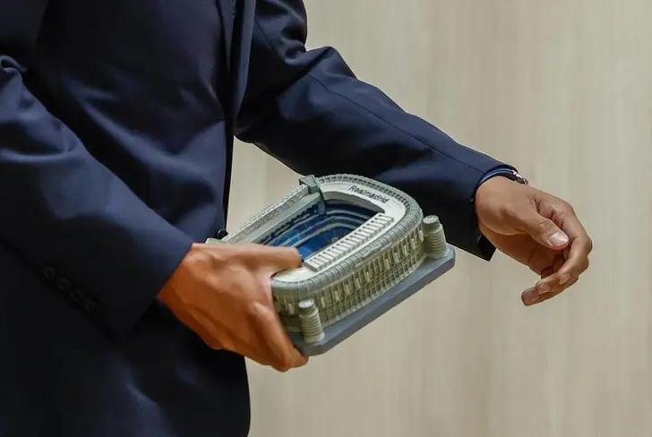 En la intimidad, luego de ser presentado como nuevo jugador del Real Madrid, Kylian Mbappé recibió un regalo especial por parte de Florentino Pérez. Se trata de una miniatura del Santiago Bernabéu, la cual no se vio debido a que fue antes de la rueda de prensa final.