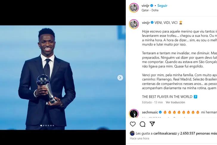 En un mensaje cargado de emoción y determinación, Vinícius Jr. ha expresado su alegría y agradecimiento por este reconocimiento, pero también ha querido compartir su historia personal y los desafíos que ha tenido que superar a lo largo de su carrera. Sus palabras han resonado en millones de personas, especialmente en aquellos que se sienten identificados con su lucha y sus orígenes humildes.