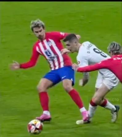 La jugada apreciada en cámara lenta, se ve cómo Antoine Griezmann le clavó los estoperoles a su rival, sin embargo Hernández Hernández no la vio y tampoco desde el VAR le hicieron caer en cuenta sobre la peligrosa jugada, estando en la cornisa el francés.