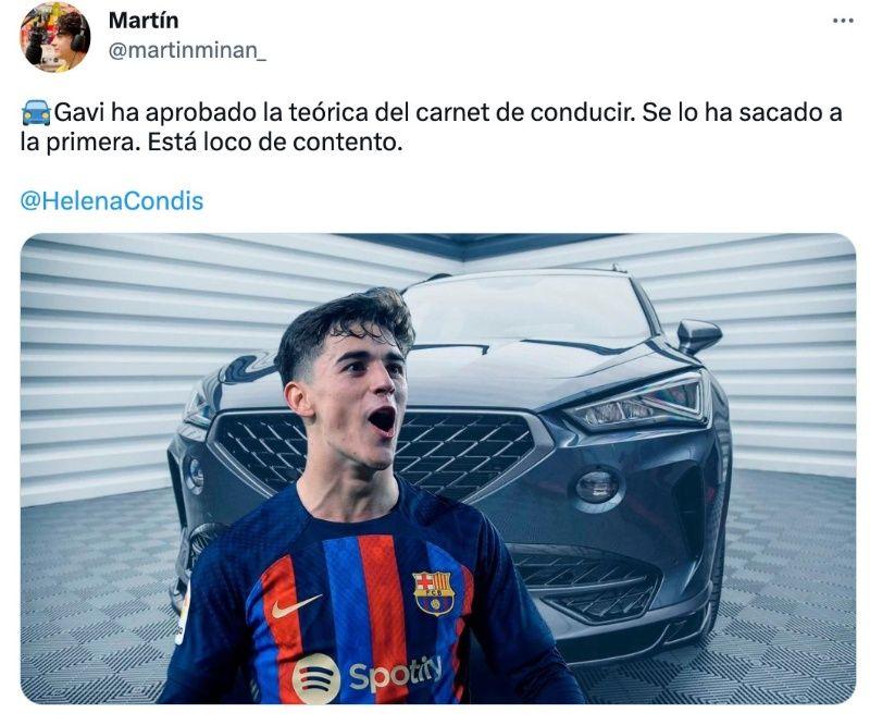 El joven futbolista del Barcelona no contaba con su permiso de conducir. Debido a su corta edad, el jugador llegaba a los entrenamientos con sus compañeros la mayoría de las veces. Pero eso se terminó. Gavi, según informa Martin Minan, logró pasar sin problemas el teórico de conducir y está lleno de felicidad.