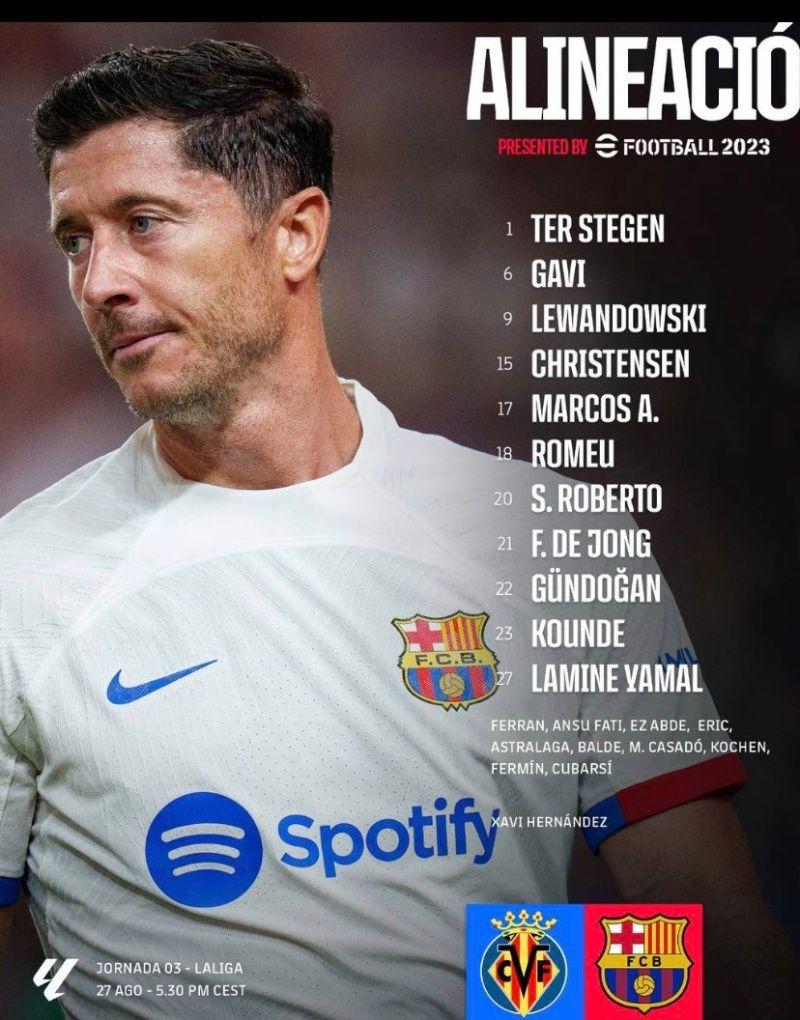 Cada vez falta menos para que la pelota empiece a rodar en el Madrigal. A partir de las 17:30hs y por Movistar Plus +, el árbitro del encuentro le dará comienzo para que empiece la tercer jornada de fútbol para el Barcelona. Xavi Hernández ya tiene a sus once jugadores para enfrentar a un siempre difícil Villarreal.