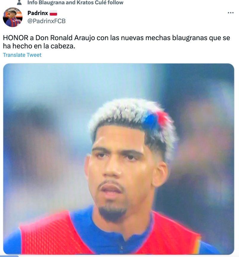 Claramente, el nuevo look de Ronald Araujo no tardó en volverse viral en redes sociales y encendió la locura de los hinchas de FC Barcelona, que ya lo aceptaban por su buen rendimiento en la zona defensivos y ahora aumentaron su cariño por la demostración de amor que tuvo el lateral uruguayo hacia el club.