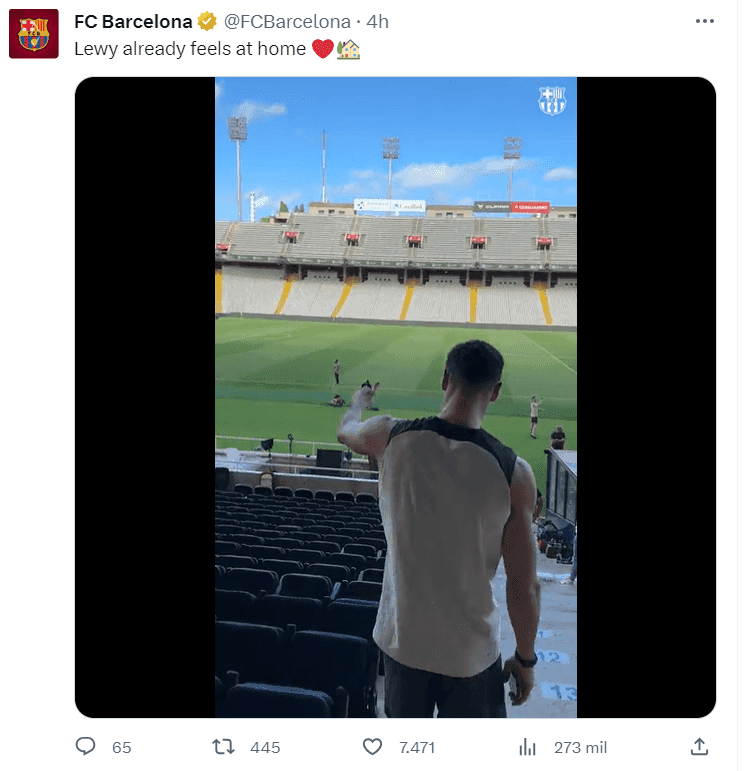 Robert Lewandowski fue uno de los primeros en mostrar su alegría y asombro al llegar al estadio olímpico Lluis Companys, registrando en su teléfono móvil las primeras imágenes del lugar del que espera se den muchas emociones en esta nueva temporada, seguido de ello el plantel principal realizó el reconocimiento del campo y el entrenamiento previo al juego amistoso que celebrará una nueva edición del Trofeo Joan Gamper, donde los dirigidos por Xavi Hernandez recibirán al Tottenham Hotspur inglés.