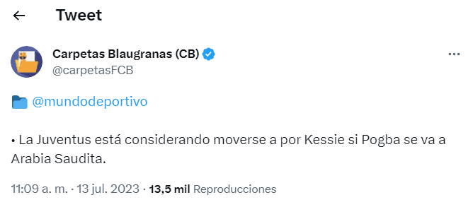 Franck Kessié es seguido de cerca por Juventus de Italia, que lo tiene como reemplazo de Paul Pogba, en caso de que el francés se marche a Arabia Saudita. Por tal motivo, el dinero que podría dejar su salida a Turín sería fundamental para ir a la carga por el portugués Bernardo Silva, quien se muere de ganas de jugar en FC Barcelona.